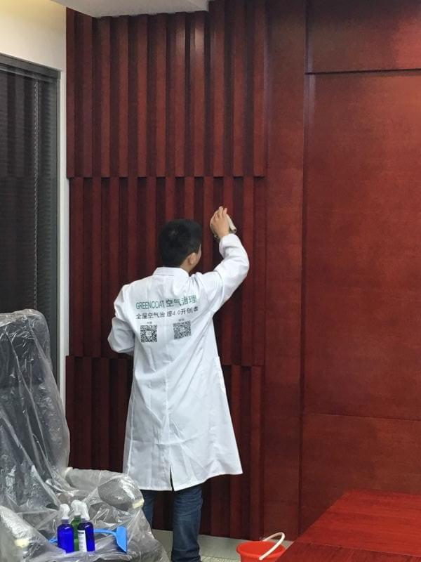 空氣治理員用抹布沾上藥劑細(xì)細(xì)治理