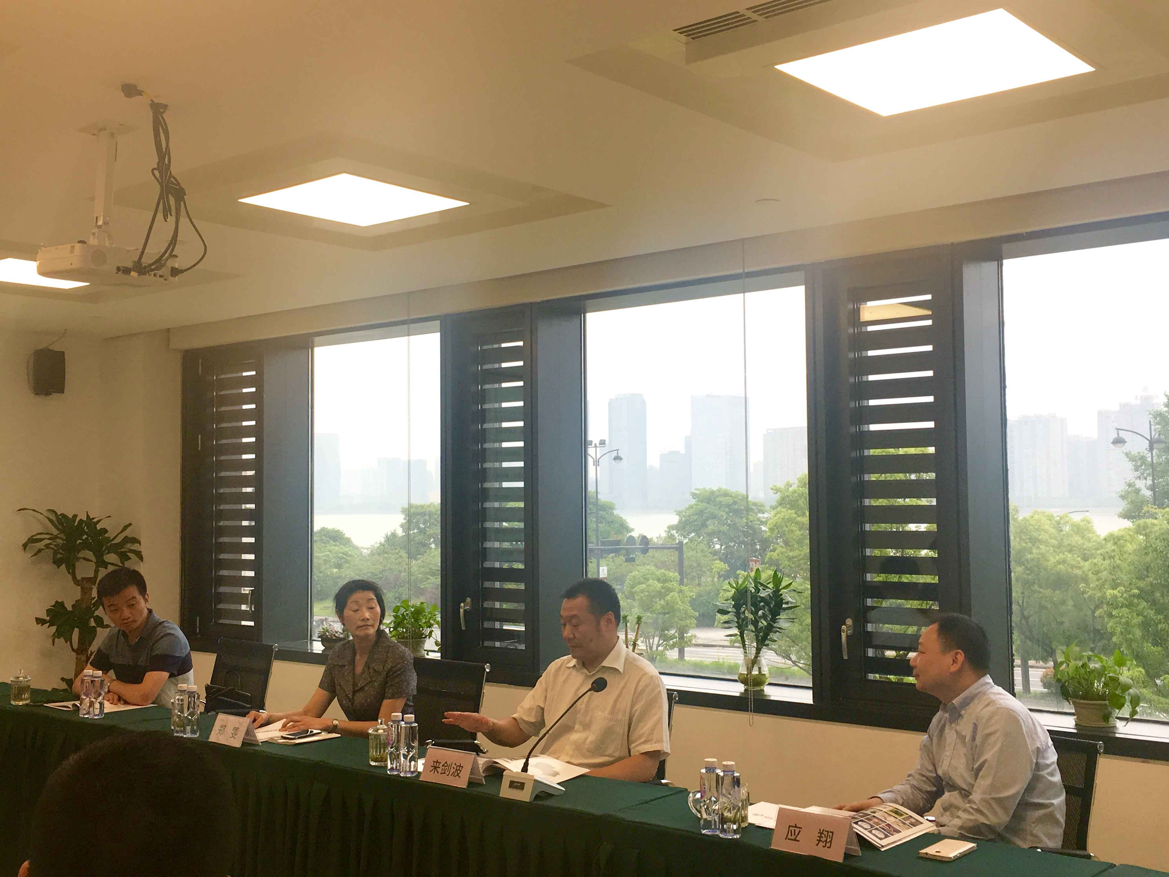 上城區(qū)區(qū)委常委、統(tǒng)戰(zhàn)部部長來劍波同志(右二)、南星街道副主任應(yīng)翔同志(右一)與公司高管合影