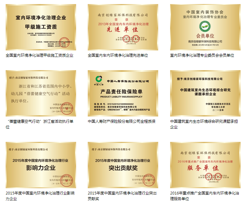 創(chuàng)綠家的成就是有目共睹的,創(chuàng)綠家的權(quán)威性也是經(jīng)得起推敲的。經(jīng)過品牌多年的努力和堅持,如今創(chuàng)綠家品牌已經(jīng)得到了業(yè)內(nèi)外的一致好評,并且屢獲行業(yè)權(quán)威認證。