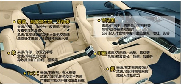 大多數(shù)消費(fèi)者買車以后都要進(jìn)行車內(nèi)裝飾,有的車開了一段時(shí)間也要重新進(jìn)行裝飾,還有的經(jīng)銷商也以買車送裝飾為優(yōu)惠條件,一些含有有害物質(zhì)的地膠、座套墊、膠粘劑進(jìn)入到車內(nèi),這些裝飾材料中含有的有毒氣體,主要包括 苯、甲醛、丙酮、二甲苯等,必然會(huì)造成車內(nèi)的空氣污染,[1] 讓人不知不覺中毒,漸漸出現(xiàn)頭痛、乏力等癥狀。嚴(yán)重時(shí)候會(huì)出現(xiàn)皮炎、哮喘、免疫力低下,甚至是白細(xì)胞減少!